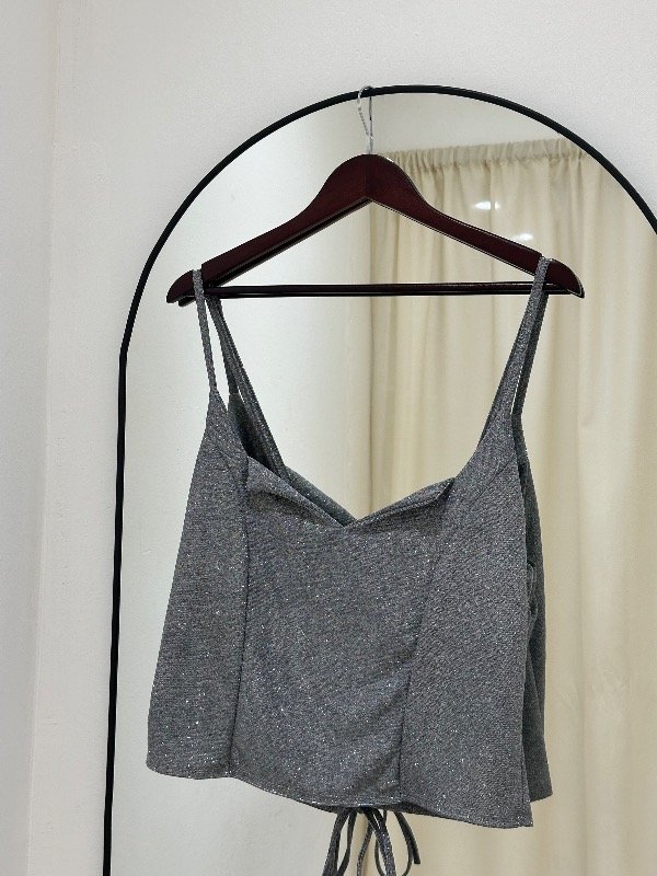 Top de lurex con glitter para atar en la espalda.